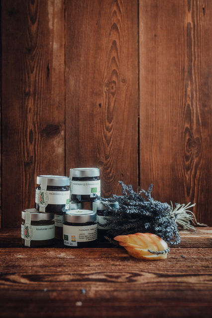 In unserem Hofladen können Sie auf kulinarische Suche gehen, denn das hofeigene Obst, Gemüse und die Kräuter werden von uns in liebevoller Handarbeit zu kreativen und immer wieder neuen Fruchtaufstrichen, Sirupen und Salzmischungen verarbeitet.